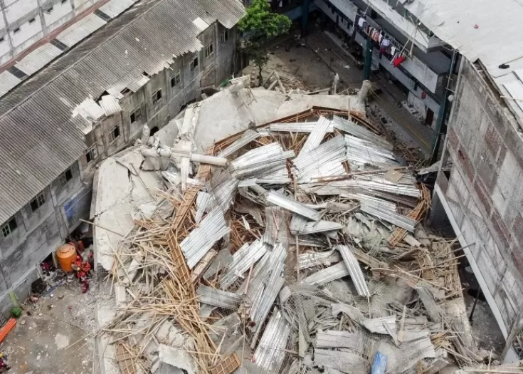 Terhitung mulai Kamis, 2 Oktober 2025 pagi, proses evakuasi dilakukan dengan bantuan alat berat setelah hingga saat itu tidak lagi ditemukan tanda-tanda adanya korban selamat di bawah reruntuhan bangunan empat lantai tersebut.