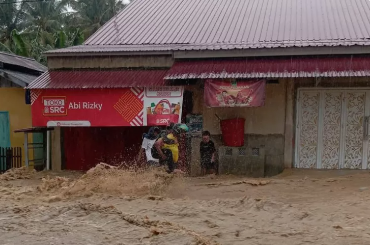 Tingginya intensitas curah hujan menyebabkan debit air sungai meningkat hingga meluap ke permukiman warga, merendam rumah, jalan, serta merusak sejumlah infrastruktur.