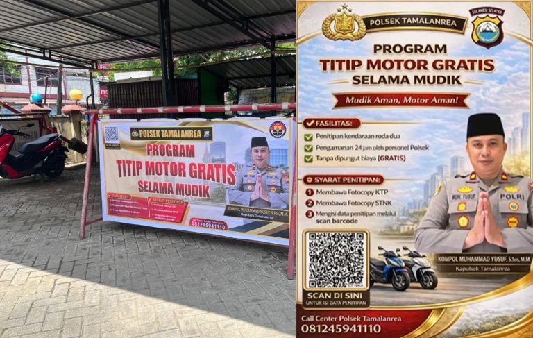 “Bagi warga yang akan mudik ke kampung halaman dan ingin menitipkan kendaraannya, silakan memanfaatkan fasilitas penitipan di Polsek Tamalanrea. Kendaraan akan kami jaga selama 24 jam sehingga masyarakat bisa mudik dengan tenang,” ujar Kompol Muhammad Yusuf, dilansir Keidenesia dari Humas Polrestabes Makassar, Senin, 16 Maret 2026.