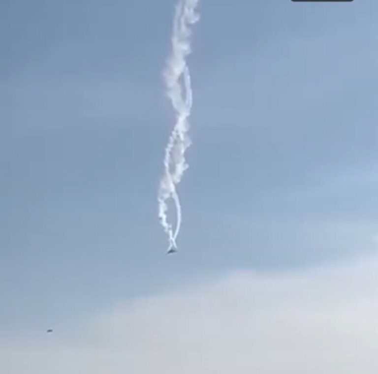 Rekaman yang diambil beberapa saat sebelum kecelakaan menunjukkan pesawat tersebut berputar saat jatuh ke bawah dengan jejak asap putih di belakangnya.