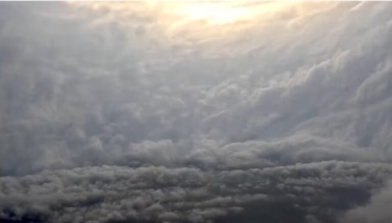 Klip tersebut mengungkap "stadium effect", di mana dinding badai melengkung ke luar seiring ketinggian, menciptakan pemandangan luas seperti arena dari dalam. "Ada pusaran awan yang indah," tulis mereka.