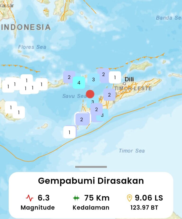 Gempa Magnitudo 6,3 Guncang NTT Senin Dini Hari