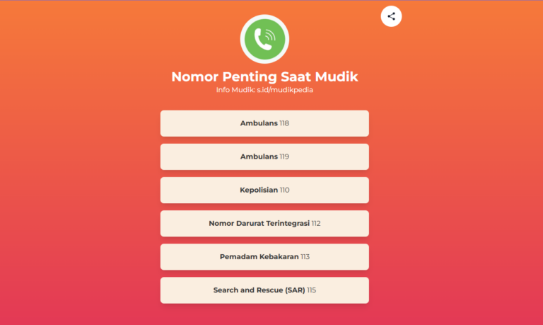 Kanal digital yang dapat diakses melalui https://s.id/MudikpediaNataru ini menyajikan berbagai informasi resmi dan terkini dalam satu platform, mulai dari pantauan lalu lintas, rekayasa jalan, tarif tol, hingga nomor darurat.