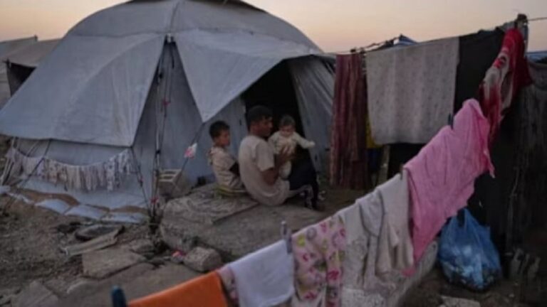 Di pemakaman ini, tanda-tanda kehidupan masih ada: sajadah berkibar di atas tali, asap mengepul dari api unggun kecil, dan seorang anak mendorong kendi air di atas kursi roda di antara makam-makam.