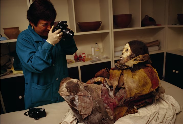 Namun kemudian ia melihat wajah keriput di antara lipatan-lipatan kain. Inilah seorang korban muda dari ritual Inca misterius yang dikenal sebagai capacocha.