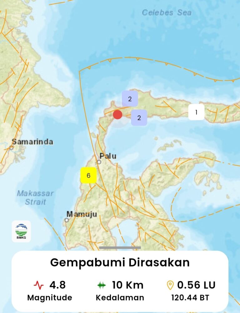 UPdates – Gempa bumi berkekuatan magnitudo (M)4,8 mengguncang wilayah Parigi Moutong, Sulawesi Tengah, Kamis, 20 November 2025, sekitar pukul 08.15 WITA.