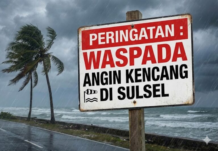 Peringatan Dini: Waspada Potensi Angin Kencang di Wilayah pesisir timur dan selatan Provinsi Sulawesi Selatan.