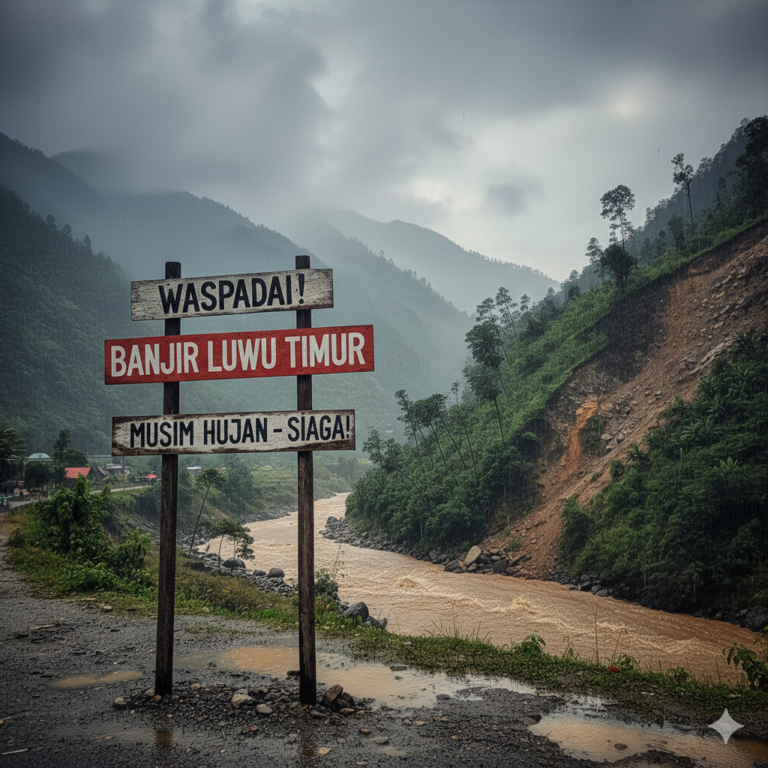 Peringatan Dini: Cuaca berisiko potensi dampak banjir terdapat di wilayah Luwu Timur.