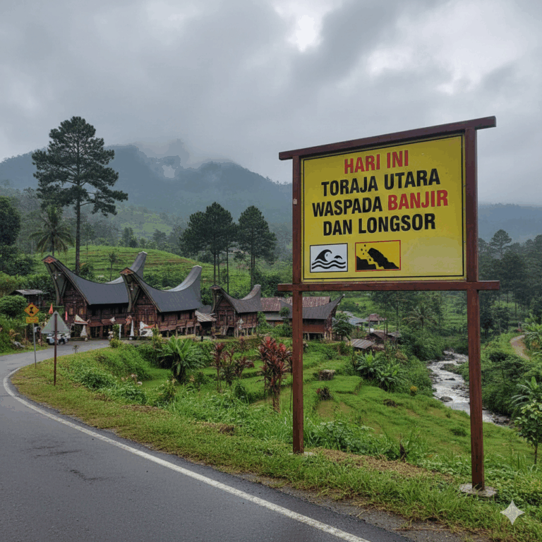 Peringatan Dini: Waspada potensi banjir/tanah longsor di wilayah Toraja Utara.