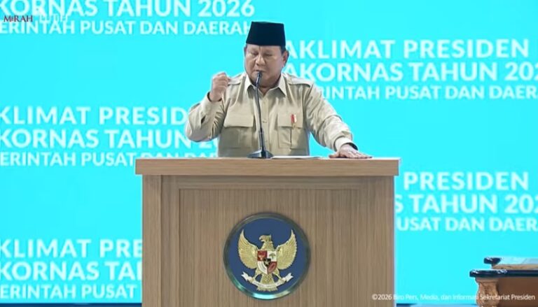 Hal ini disampaikan Prabowo saat membuka Rapat Koordinasi Nasional (Rakornas) Pemerintah Pusat dan Daerah Tahun 2026 yang diselenggarakan Kementerian Dalam Negeri (Kemendagri) di Sentul International Convention Center (SICC), Kabupaten Bogor, Jawa Barat, Senin, 2 Februari 2026.
