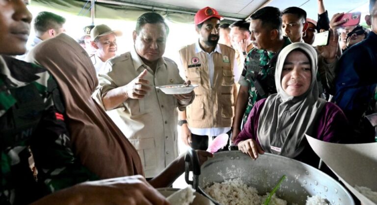 Setelah berdialog dengan warga, Presiden Prabowo kemudian bergerak menuju dapur umum untuk meninjau langsung persiapan distribusi pangan untuk pengungsi.