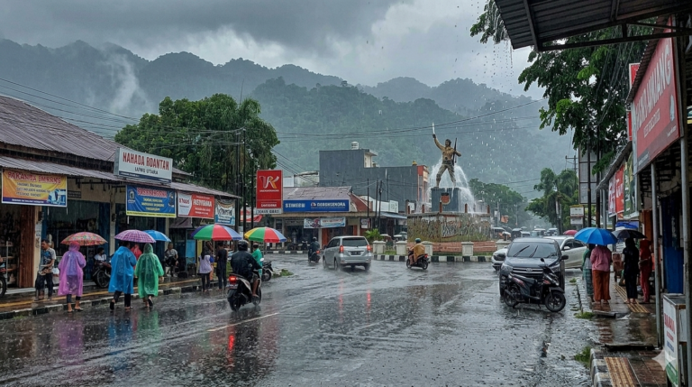 Ilustrasi Luwu Utara diguyur hujan di siang hari. (foto: AI Generated)