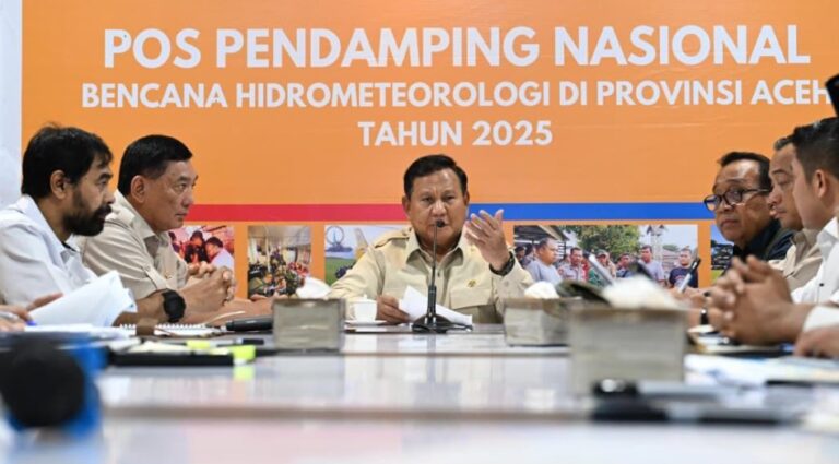 Usai meninjau langsung kondisi terdampak bencana di sejumlah lokasi di Aceh, Prabowo Subianto memimpin ratas mengenai penanganan dan pemulihan bencana yang melanda Aceh, Sumatra Utara, dan Sumatra Barat.