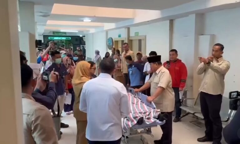 Presiden Prabowo Subianto menjenguk korban kecelakaan tabrakan kereta api yang dirawat di RSUD Bekasi, Kota Bekasi (Foto: Sekretariat Kabinet/Tangkapan Layar)
